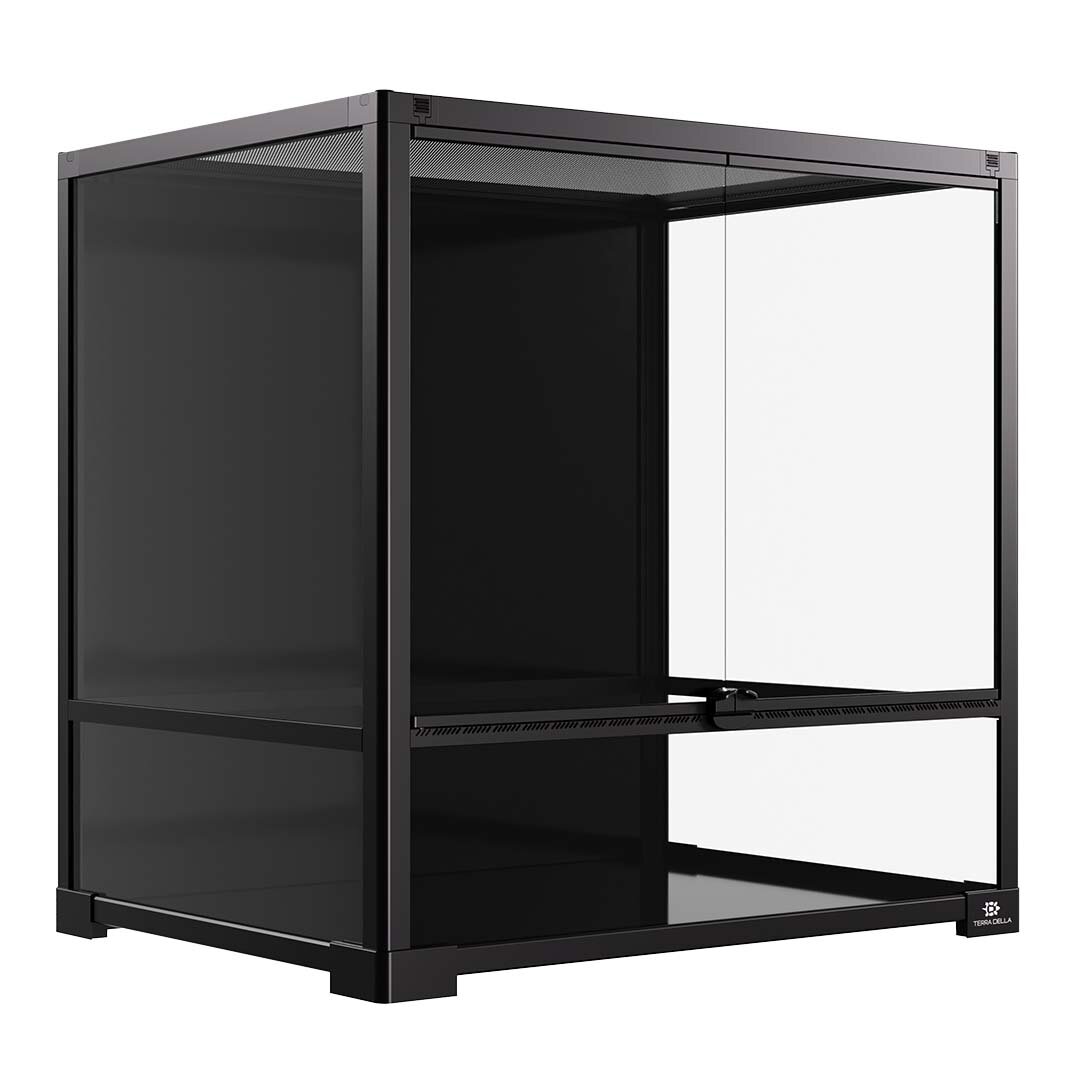De Terra Della Knockdown terrariums zijn stijlvolle, eenvoudig te monteren leefomgevingen voor reptielen, amfibieën en insecten. Ze worden geleverd als handig bouwpakket en zijn snel in elkaar te zetten. Voorzien van dubbele, volledig uitneembare scharnierdeuren en een afneembaar metalen bovenrooster voor optimale toegang en ventilatie. Het rooster laat warmte en UVB-straling goed door en is geschikt voor het plaatsen van lampen. Kabel- en slangopeningen aan de achterkant en een betrouwbaar slot maken het terrarium helemaal compleet. Verkrijgbaar in verschillende formaten
