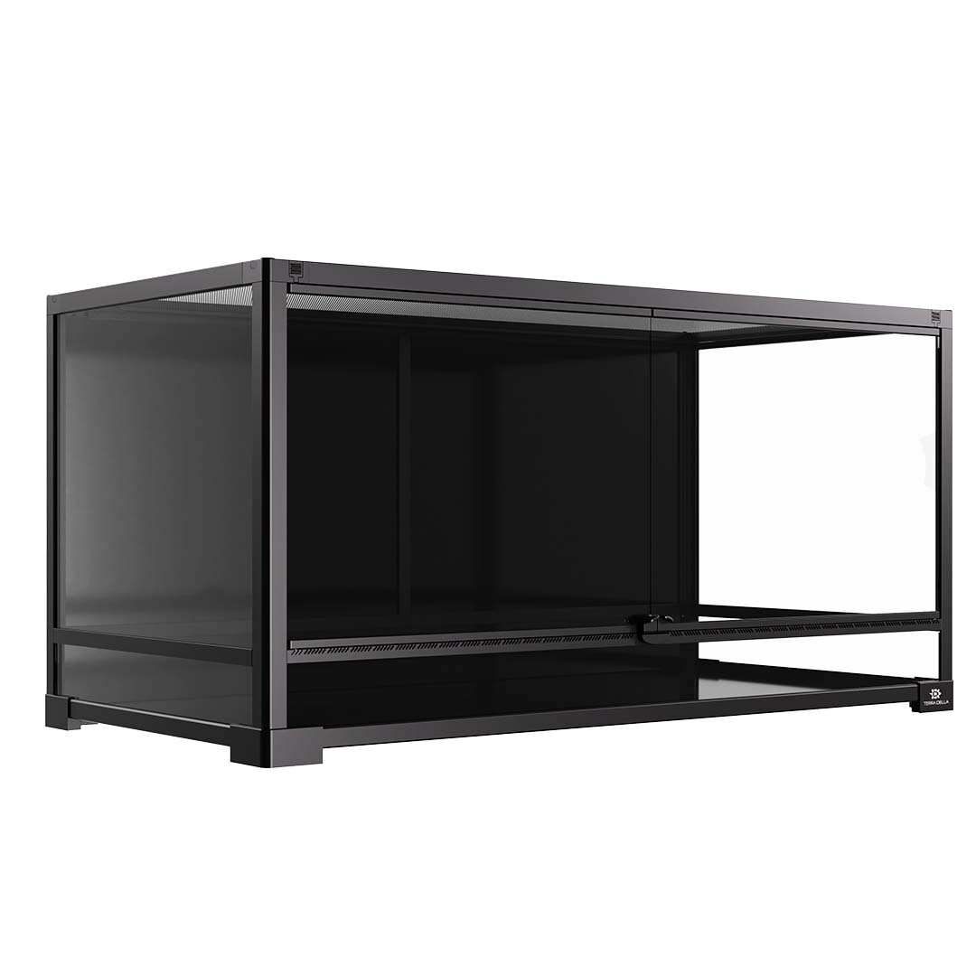 De Terra Della Knockdown terrariums zijn stijlvolle, eenvoudig te monteren leefomgevingen voor reptielen, amfibieën en insecten. Ze worden geleverd als handig bouwpakket en zijn snel in elkaar te zetten. Voorzien van dubbele, volledig uitneembare scharnierdeuren en een afneembaar metalen bovenrooster voor optimale toegang en ventilatie. Het rooster laat warmte en UVB-straling goed door en is geschikt voor het plaatsen van lampen. Kabel- en slangopeningen aan de achterkant en een betrouwbaar slot maken het terrarium helemaal compleet. Verkrijgbaar in verschillende formaten