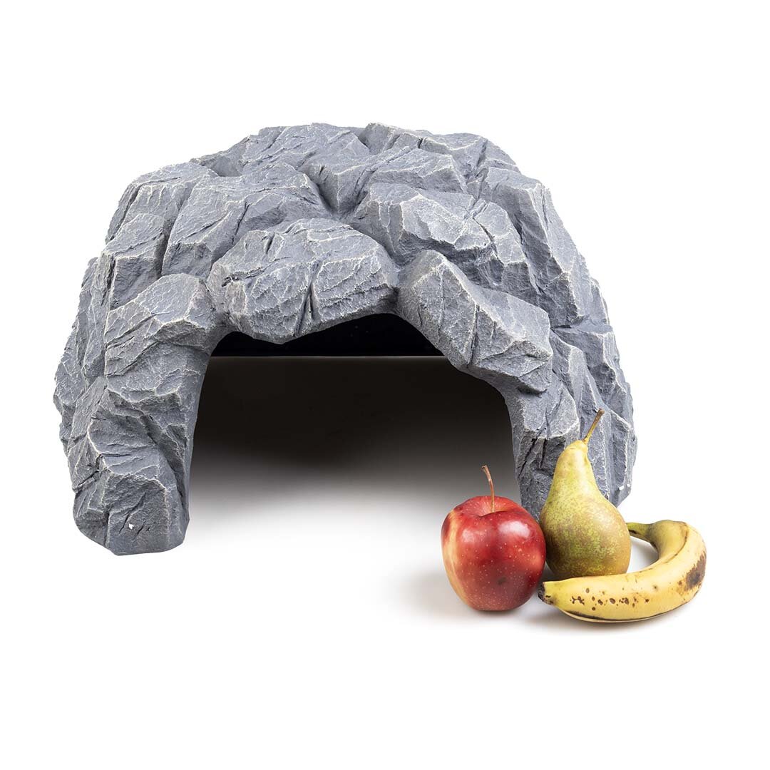 Geef je landschildpadden een natuurlijke en knusse schuilplaats met onze rotsachtige grot! Deze speciaal ontworpen schuilplaats biedt een veilige en rustige plek voor je schildpadden om zich terug te trekken en te ontspannen. Door de realistische rotsstructuur past deze grot perfect in het natuurlijke landschap van de schildpadden. Deze grot is nog een maat groter dan onze andere schildpad schuilgrot. Ook andere grotere reptielen kunnen gebruik maken van deze grot.